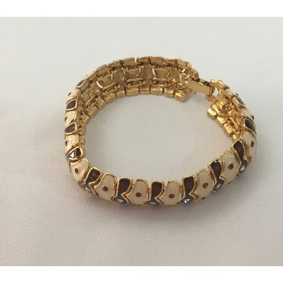 Joan Rivers Link Bracelet Cream White Amber Red Brown Clear Rhinestones 7.5 “