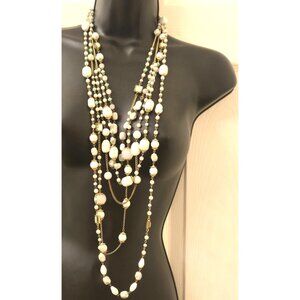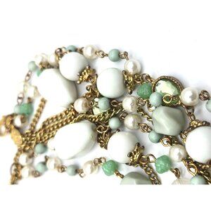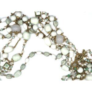 Joan Rivers Multistrand Necklace 34" White Green Beads Crystals Signed