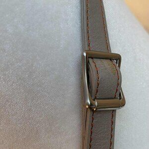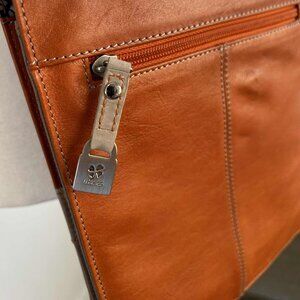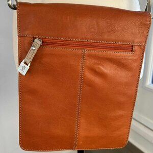 From Joanel, the Canadian leather house known for elevated everyday designs, this vivid orange crossbody adds a refined pop to neutrals; sleek stone trim and brushed-silver hardware keep it polished for work-to-weekend styling.