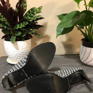 Black and white houndstooth pump size 37 1/2. Houndstooth is a tweed type fabric, lining and sole are non-leather. Brand is Joanne Mercer. Purchased in Australia. Very lightly used indoors.