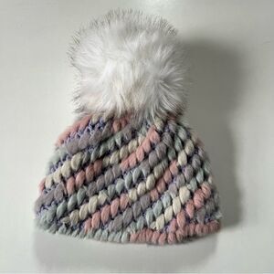 Jocelyn X Terez NY Pineapple Multicolor Knit Faux Fur Hat OS