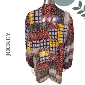 Jockey Boho Patchwork Tunic | Printed Long Sleeve Lace Detail Top Semi Sheer XL