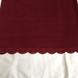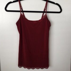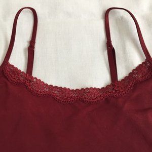 Really pretty matching burgundy Jockey camisole and pantie set - both 90% nylon and 10% spandex. The cami is size small with the bust measuring ~26" (that is flat across; but, because of the nylon & spandex it fits way more generously than that), across the bottom it measures ~29" and has adjustable straps. The underwear is a size 5 with the waist/hips measuring ~24". Both are in very good condition.