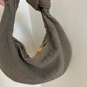Jodie Style Suede Shoulder Bag - Grey - Woven Purse