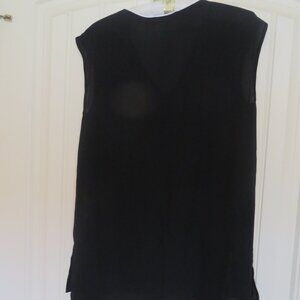 Joe Fresh 100% Polyester sheer black top with white trim.