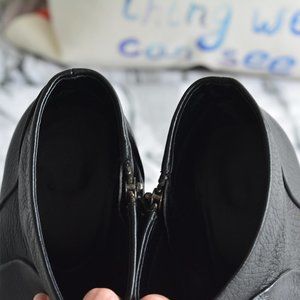Well worn pair of Joe Fresh boots, but still lots of life left in these. They've held up really well over the years since they're 100% leather. Please refer to photos for current condition/flaws. Inner logo and size has rubbed off with wear, but I recall these being a 6.5 (I'm a size 6 and they're quite loose on me). 3" heel.