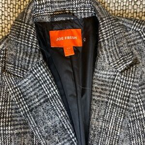 Joe Fresh 3/4 Length Black + White Plaid Wool-blend Jacket, size small.