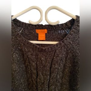 Fashion knitted sweater. Full length sleeves with a stitch detailing on frontside. Soft material with different colour hues. Crew neckline with ribbed detailing on cuff, neckline and hem. Has good stretch, gently used, in good condition. Pit to pit 24”