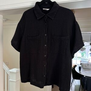 Joe Fresh Black Crinkle Pattern Short Sleeve Button-Up Top - Size 1X