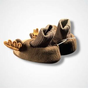 Joe Fresh Brown Moose Animal Print Slipper Booties Size: L/ 9-12M Condition: New