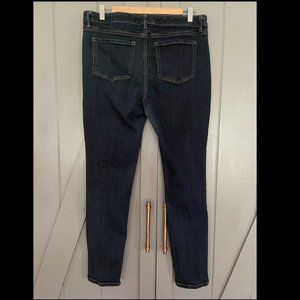 High rise classic slim dark wash denim.