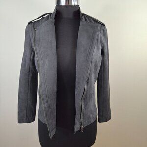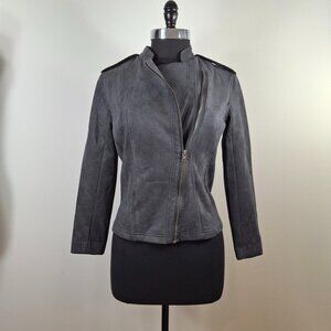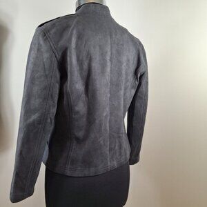 Joe Fresh Crop Grey Suede Moto Biker Jacket Sz M Zipped Lined Vegan Suede