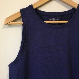 Very good preowned condition, higher crew neck tank top in deep midnight blue by Joe Fresh for their Active wear line. Nice quality, cut and fit.