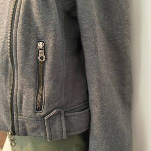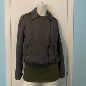 This is a fantastic Joe Fresh Grey Moto style bomber jacket, which can be worn multiple ways.