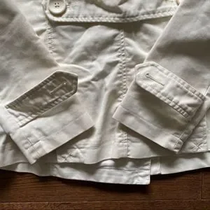 - Missing the button on each cuff as shown in pictures. Either new buttons could be added, or the cuff strap could be removed. Otherwise this coat is in great condition!