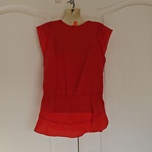 Joe Fresh Ladies Silk Blouse Elastic Waist With Peplum Hem Small Red
