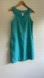 Joe Fresh. 55% linen 45% cotton. Polyester lining. Plastic gems decorate the neckline. Gorgeous aqua colour. Pockets. Side zip. Great used condition. Slight cl marks under arms.