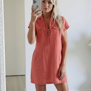 Joe Fresh Linen Shirt Dress Coral Orange Sz S