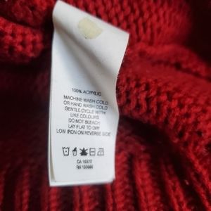 This cozy red sweater is in amazing condition. The top is a burgundy while the bottom of both the tunic and the sleeves are a jewelled red. It is both oversized and a crew neck.