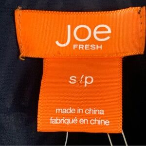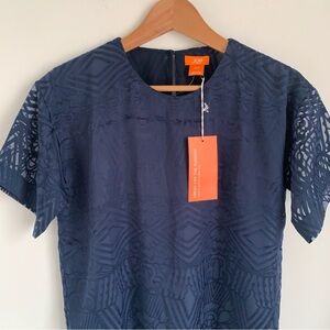 Joe Fresh Navy Burnout Blouse Semi-Sheer Geometric Pattern Short Sleeve NWT Sz S