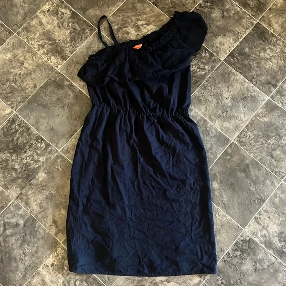 Joe Fresh Navy Ruffle Dress One Shoulder