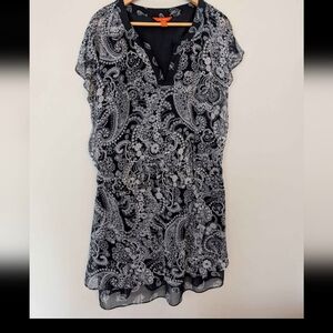 Joe Fresh Navy White Paisley Pattern Ruffle Tiered Dress Flutter Sleeve Medium