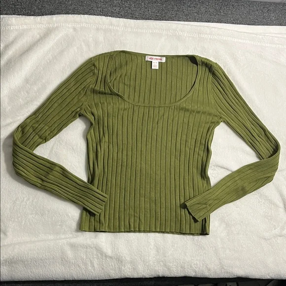 Chic olive ribbed knit top from Joe Fresh. Ideal for everyday style.