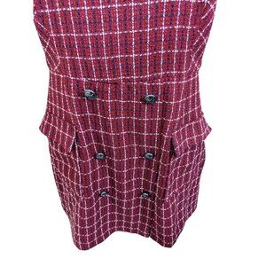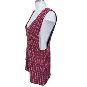 Joe Fresh Plaid Pinafore Dress Womens L Boucle Red White Black Pockets Academic