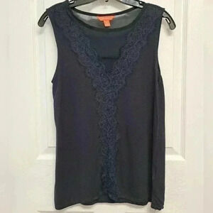 ❤️ Joe Fresh Sleeveless Top Navy Blue Lace Trim Size Medium Sleeveless