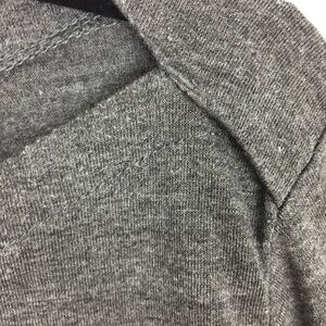 Women's Size Small. Polyester / spandex. Gray / grey striped. Long body t-shirt. Boat neck. Ruched 3/4 sleeves.