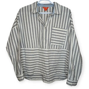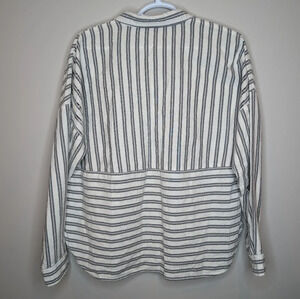 Joe Fresh Striped White & Grey 100% Cotton Long Sleeve Partial Button Down M