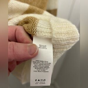Beige and white stripped sweater from Joe Fresh. Light material, easy to throw on over a collared shirt, slightly oversized. Excellent condition. Hand wash cold.