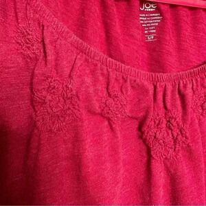 Joe Fresh T-Shirt Elastic Boat Neck Flowers Reddish Pink Size Small
