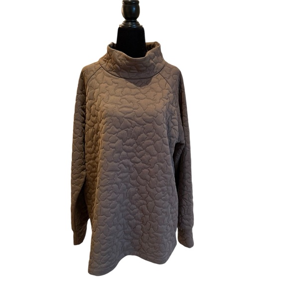 Joe Fresh copper textured tunic. Fitted design warm without bulk. Funnel neck and dolman style sleeves. Polyester/spandex. 27" shoulder to hem. Size large.