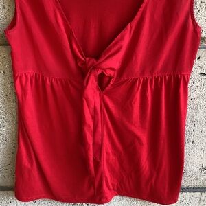 This top has the cutest back detail with a lovely tie and very soft material. It’s a combination of two different fabrics (see materials tag picture for specifics) making it a little more elevated than just a plain tshirt tank. Loose, flowy, relaxed fit.