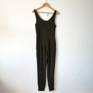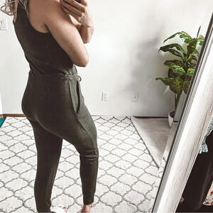 Joe Fresh Tie Waist Jogger Sleeveless Jumpsuit Dark Olive Heather Green Sz XS