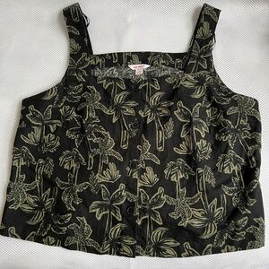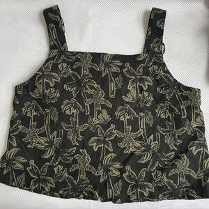 Joe Fresh Top Sleeveless Blouse XL Straps Dark Green Palm Trees Linen Cotton New