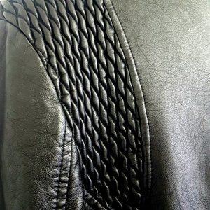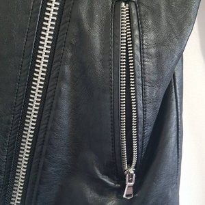 Soft faux leather in excellent condition with asymmetrical zip, two side pockets, zip sleeves and inner lining.