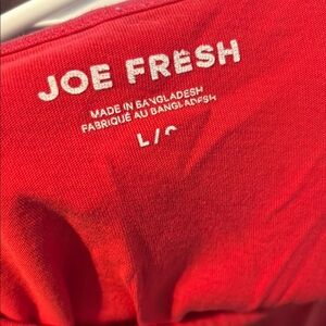 Bright red tee with white Joe Fresh logo. Comfortable and stylish. PTP 20” Length 27”