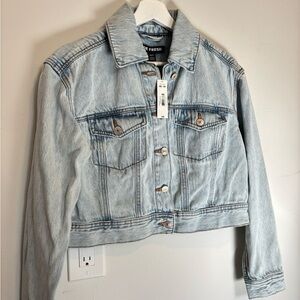Stylish light blue denim jacket by Joe Fresh. Features button front and chest pockets. Ideal for casual wear.