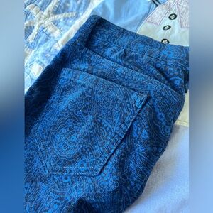 Joe Fresh Womens Pant Blue Paisley Corduroy Slim Skinny Pants