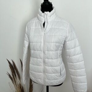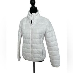 Stay warm and stylish with this elegant white quilted jacket. Perfect for any occasion, it offers both comfort and fashion. Like new size medium