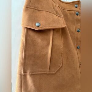 Joe Fresh tan brown faux suede button front skirt size 12 with pockets