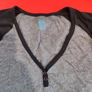 Joe Fresh two tone grey and black V neck 1/2 sleeve shirt women's size M