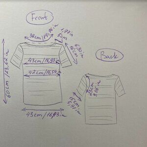 Bust (underarm to underarm): 16.9 in (43 cm)
