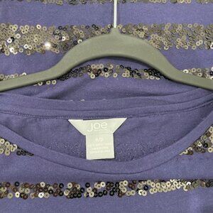 Add instant sparkle to your wardrobe with this J.Crew navy blue sequin stripe T-shirt. Sequin stripes are placed all over the T-shirt - on the back, front and sleeves. Made from 100% stretch cotton, this boat-neck top combines comfort with effortless style. When classic stripes meet sparkling sequins, you get a T-shirt that works everywhere — from street style to holiday glam.
