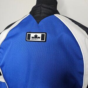 “In great condition. Small marks but not noticeable. Everything originally intact, zippers and buttons work great. Wear and tear noticeable is the Decal "Rocket" across the chest.”