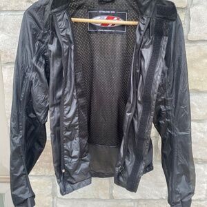 The Victoria™ C.E. rated women's motorcycle jacket from Joe Rocket Canada is built with a water resistant Rock Tex™ 600 outer shell and includes a removable Dry Tech™ waterproof/windproof liner that can be worn over or under the jacket. The jacket comes equipped with removable Vaultª C.E. approved armour for the shoulders, elbows and spine.