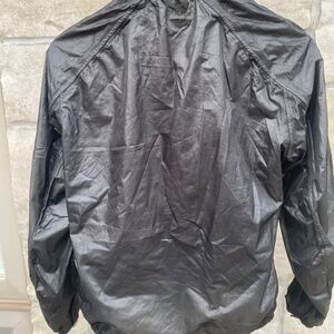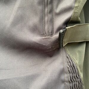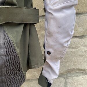 Very good preloved condition, was worn a handful of times and it was well taken care of. It was washed recently but the forearms & neckline could use a little TLC, please see pictures. There is also a spot on the back where the Velcro strap pulled at the fabric, please see picture.