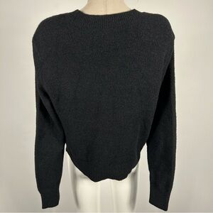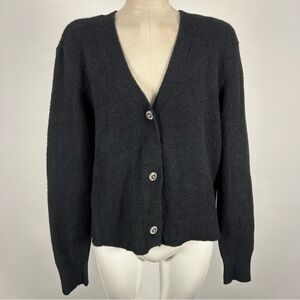 This Joe Fresh cardigan in classic black offers a timeless style with its deep V-neckline and ribbed cuffs. Made from a comfortable knit material, it provides a versatile look suitable for both casual and formal occasions.